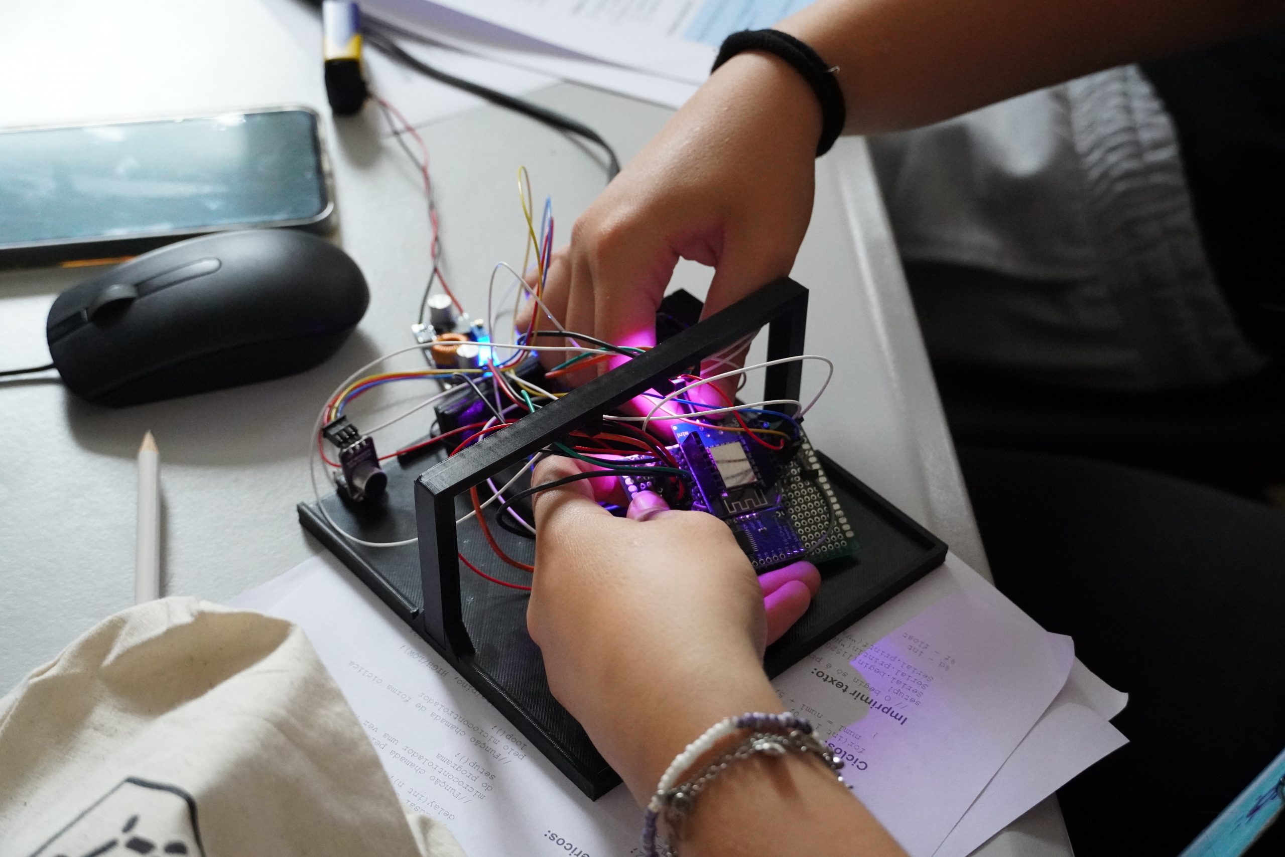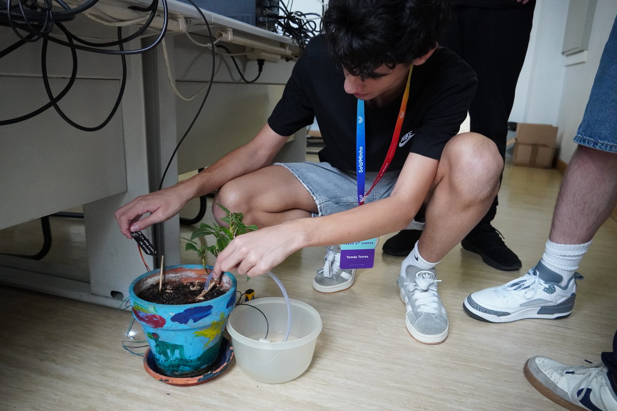 During the Internet of Things (IoT) activity, students developed creative projects using sensors and microcontrollers, e.g., self-sufficient plants and smart home lighting systems. The workshop introduced them to programming in C and the basics of device networks.