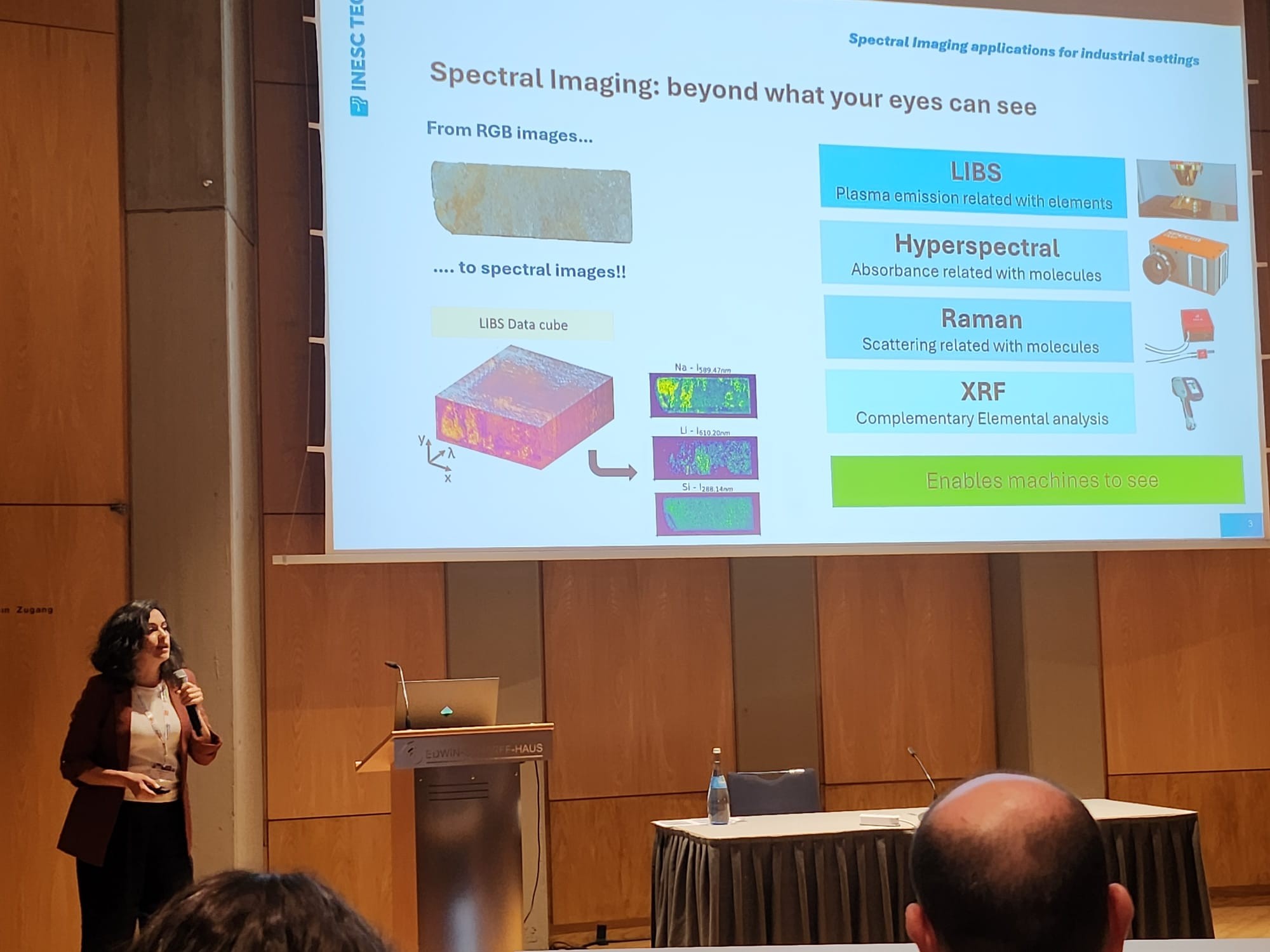 “My presentation, Spectral Imaging Applications for Industrial Settings: On-Site, At-Line, and In-Sight, focused on the use of advanced spectral imaging methods such as LIBS, Raman, and hyperspectral imaging to support real-time decision-making in industrial environments,” explained the INESC TEC researcher.