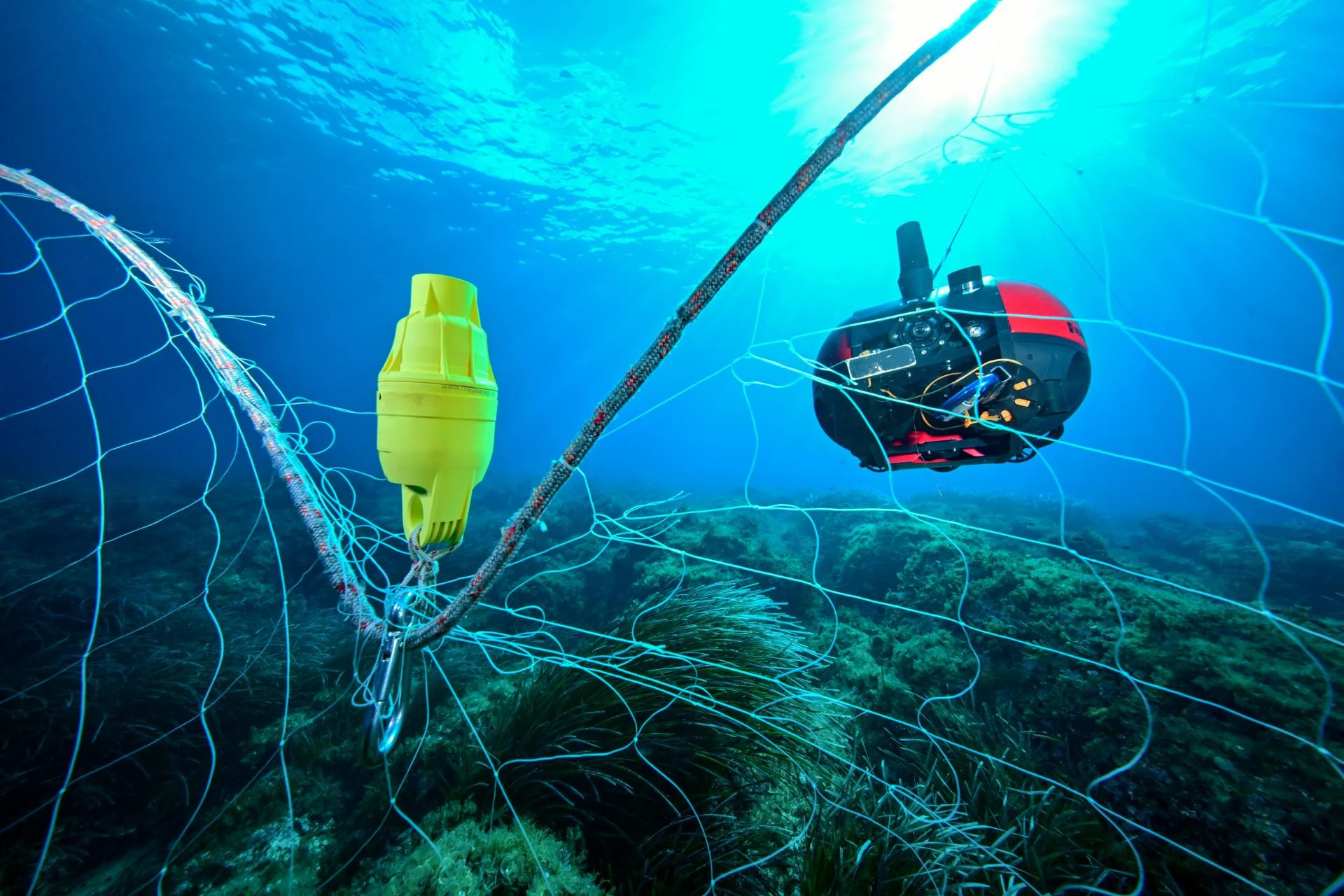 During the tests, one or more acoustic tags are attached to each net to be located. These tags, made from recycled materials, have a unique identifier. As a result, they respond only to a specific signal emitted either by surface-based acoustic positioning systems or by robotic vehicles attempting to locate them.