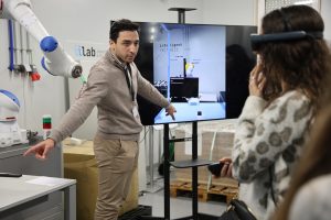 The week began at INESC TEC’s Industry and Innovation Laboratory (iiLab), where students discovered projects focused on sustainability in robotics, e.g., textile recycling using computer vision and the intelligent dismantling of electronic waste, addressing the question: “Did you know that your clothes can be easily recycled?” Pedro Dias, an INESC TEC researcher in industrial robotics, stated that “it was incredible to witness the students’ curiosity as they interacted with real-life technology and broke through the barrier of screens”, showing that “science and research are essential pillars. Who knows – perhaps some of them will be at INESC TEC in a few years’ time?” During the session, students also took part in hands-on experiments involving the teleoperation of mobile robots using virtual reality. The knowledge acquired was then tested through an interactive quiz.
