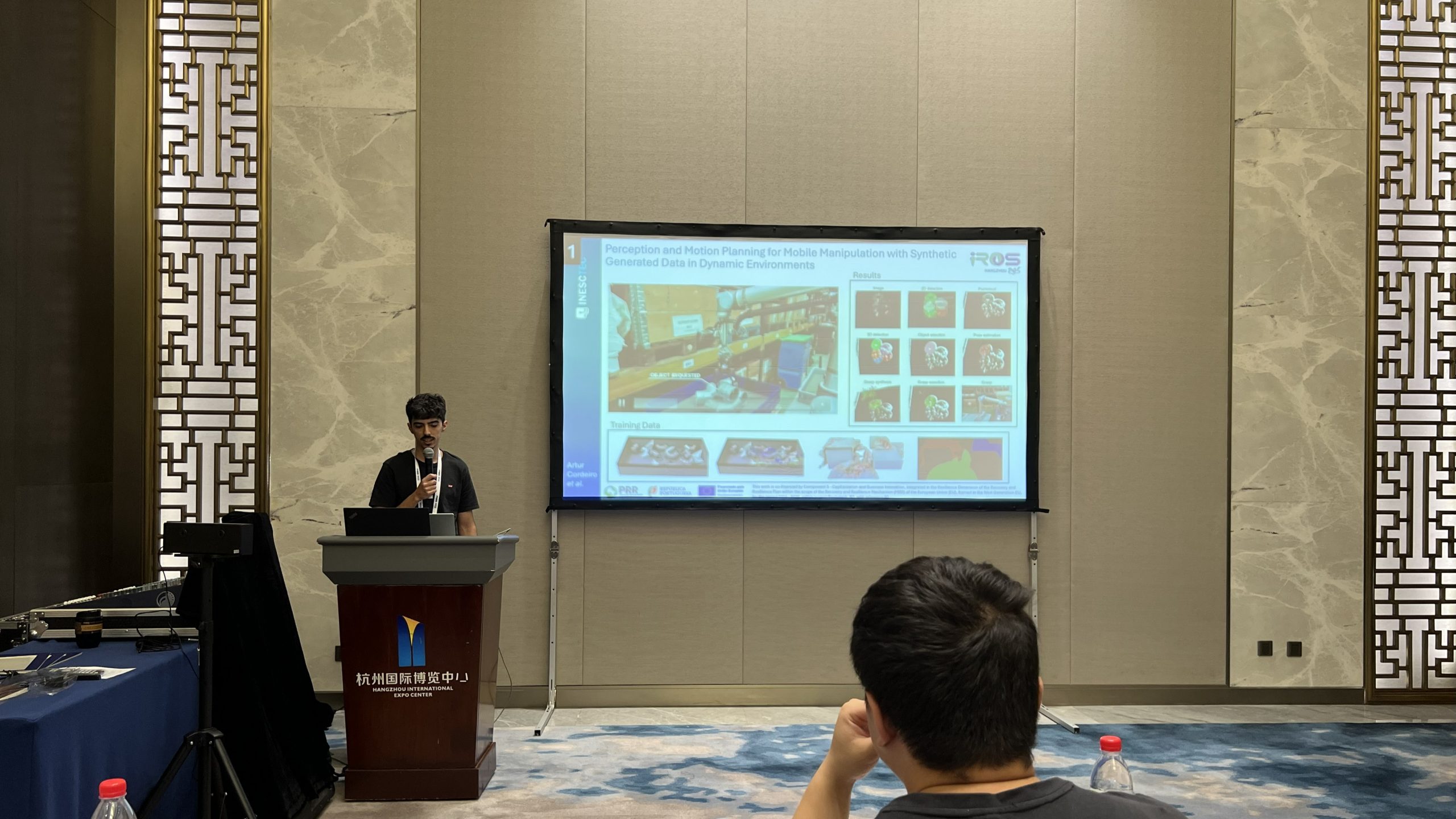 André Gonçalves, Artur Cordeiro, Maria Lopes e António Oliveira – foram estes os quatro cientistas que representaram o INESC TEC no IROS 2025, mas foram vários os investigadores e investigadoras do Instituto que estiveram envolvidos nos trabalhos que foram apresentados na China, mais concretamente em Hangzhou. As investigações do INESC TEC vão desde tecnologias robóticas para ajudar na reabilitação de pacientes que sofreram AVC, a robôs que aprendem a reconhecer e manipular novos objetos sem intervenção humana, a abordagens novas para automação da descarga de contentores marítimos e, ainda, a aplicações em ambientes submarinos para identificação e seleção de pontos de interesse. Mas, vamos por partes e a cada um destes trabalhos.