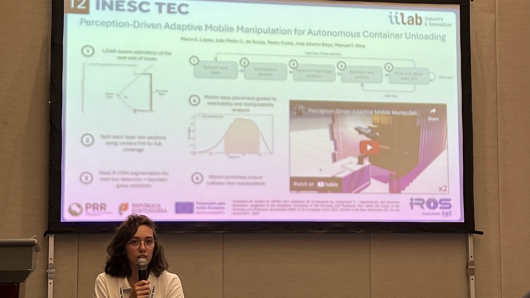 Também no âmbito do ProdutechR3, Maria Lopes apresentou uma investigação conduzida pelo INESC TEC para automatizar o processo de descontentorização de contentores marítimos. Esta é uma tarefa que é fisicamente exigente e difícil de automatizar devido à variabilidade no tamanho e disposição da mercadoria. De acordo com a investigadora, “a maioria das soluções existentes é específica para esta tarefa, com hardware e software concebidos especificamente para o efeito, o que limita a sua reutilização noutras aplicações”.