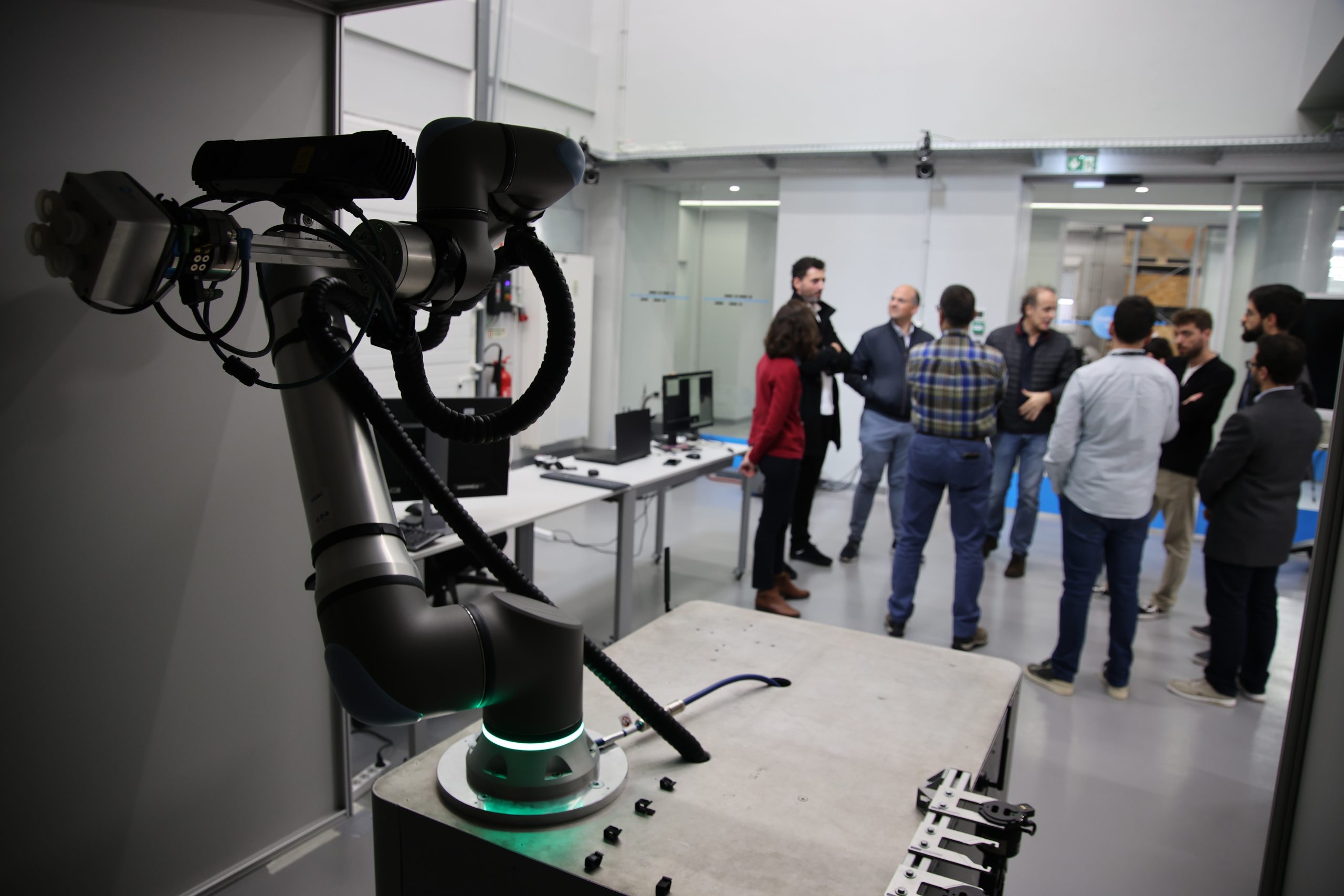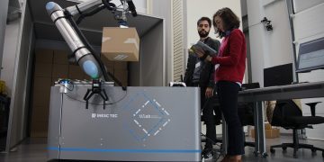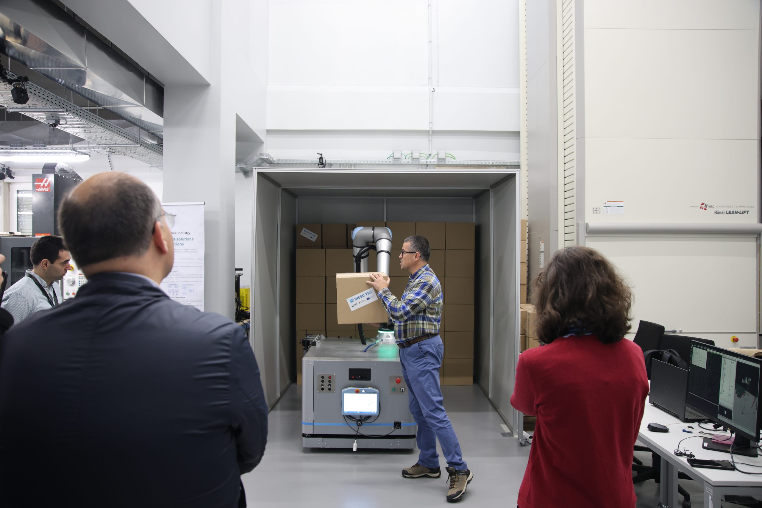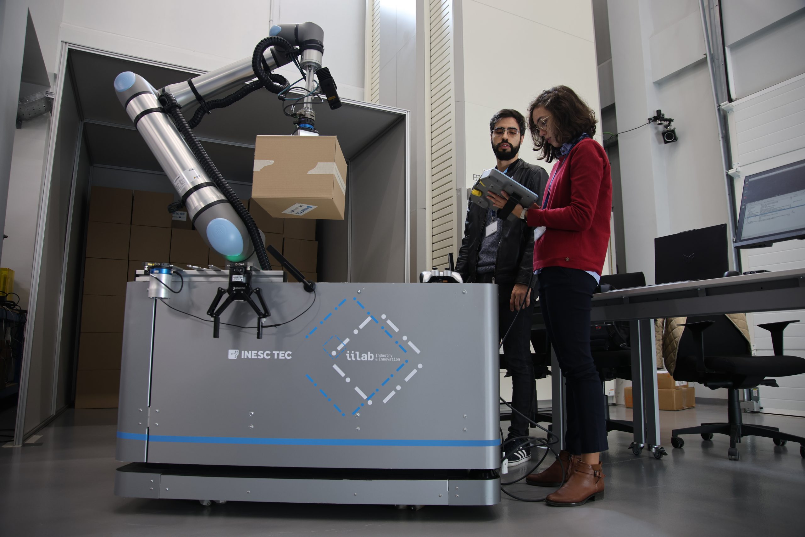Uma análise rápida permite a Maria Lopes, investigadora do INESC TEC, confirmar o carácter inovador da solução que ajudou a desenvolver ao longo dos últimos meses, no âmbito da agenda PRODUTECH R3 do PRR. “Para já, em Portugal, não há nenhuma. Em relação às restantes, é difícil ver “o funcionamento total, ou seja, acompanhar o processo do início ao fim”. Esta ideia de continuidade e realismo é destacada por Frederico Borges, da SONAE – um dos representantes da indústria que marcaram presença no Laboratório de Indústria e Inovação (iiLab) do INESC TEC para conhecer a solução dedicada ao retalho. “O que conseguiram aqui, e de uma forma espetacular, foi demonstrar em ambiente real o que tínhamos visto na simulação. Já estou habituado a que o INESC TEC faça isto, mas a verdade é que conseguiram demonstrar efetivamente 100% do que eu tinha visto no ecrã do computador.”