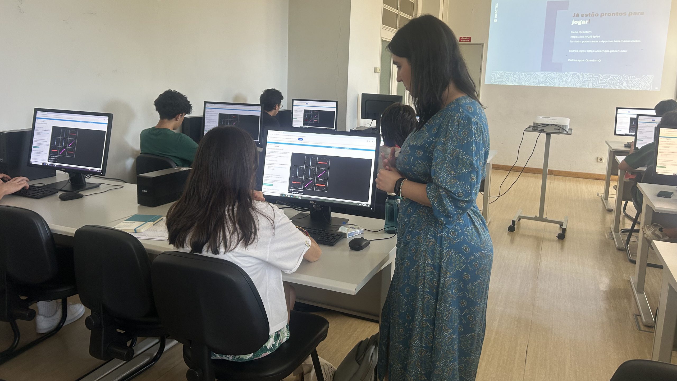Já o workshop de Computação Quântica apresentou os princípios básicos deste novo paradigma e envolveu os participantes em jogos intuitivos para reforçar a compreensão, terminando com uma discussão sobre as aplicações futuras da área.