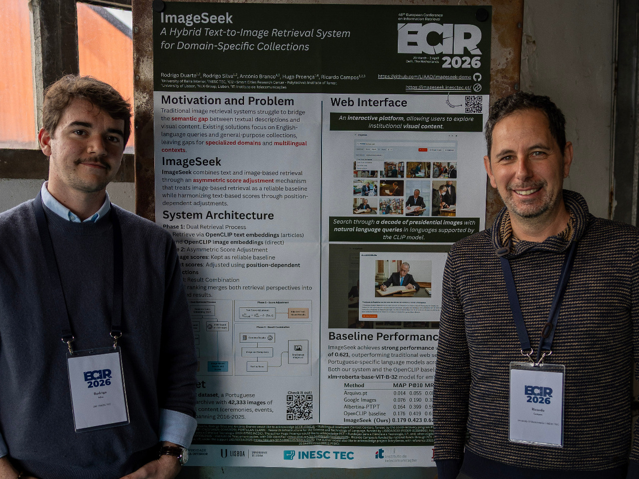 A participação do INESC TEC na ECIR 2026 reflete o crescente reconhecimento internacional da instituição nas áreas da recuperação de informação e da IA, consolidando a sua presença em redes científicas de excelência. A próxima edição do ECIR terá lugar em Southampton entre os dias 21 e 25 de março de 2027.