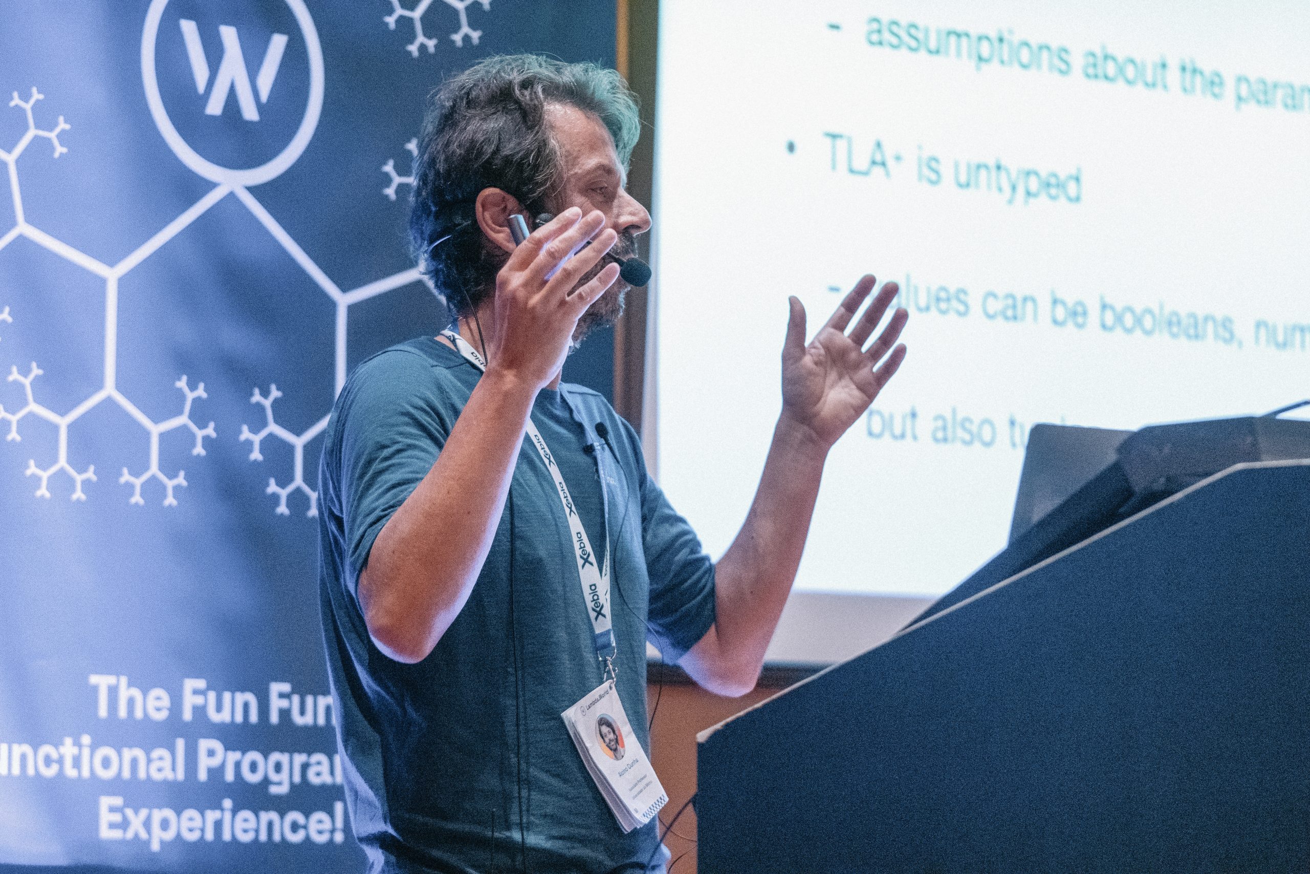 Na sua palestra, intitulada Designing Software with Complex Configurations, Alcino Cunha focou-se no desenho de software com configurações complexas usando métodos formais “leves”, com destaque para as linguagens TLA+ e Alloy. O objetivo foi demonstrar a aplicação das mesmas na especificação e verificação de um protocolo distribuído simples e que é expectável que funcione em diferentes configurações de rede.