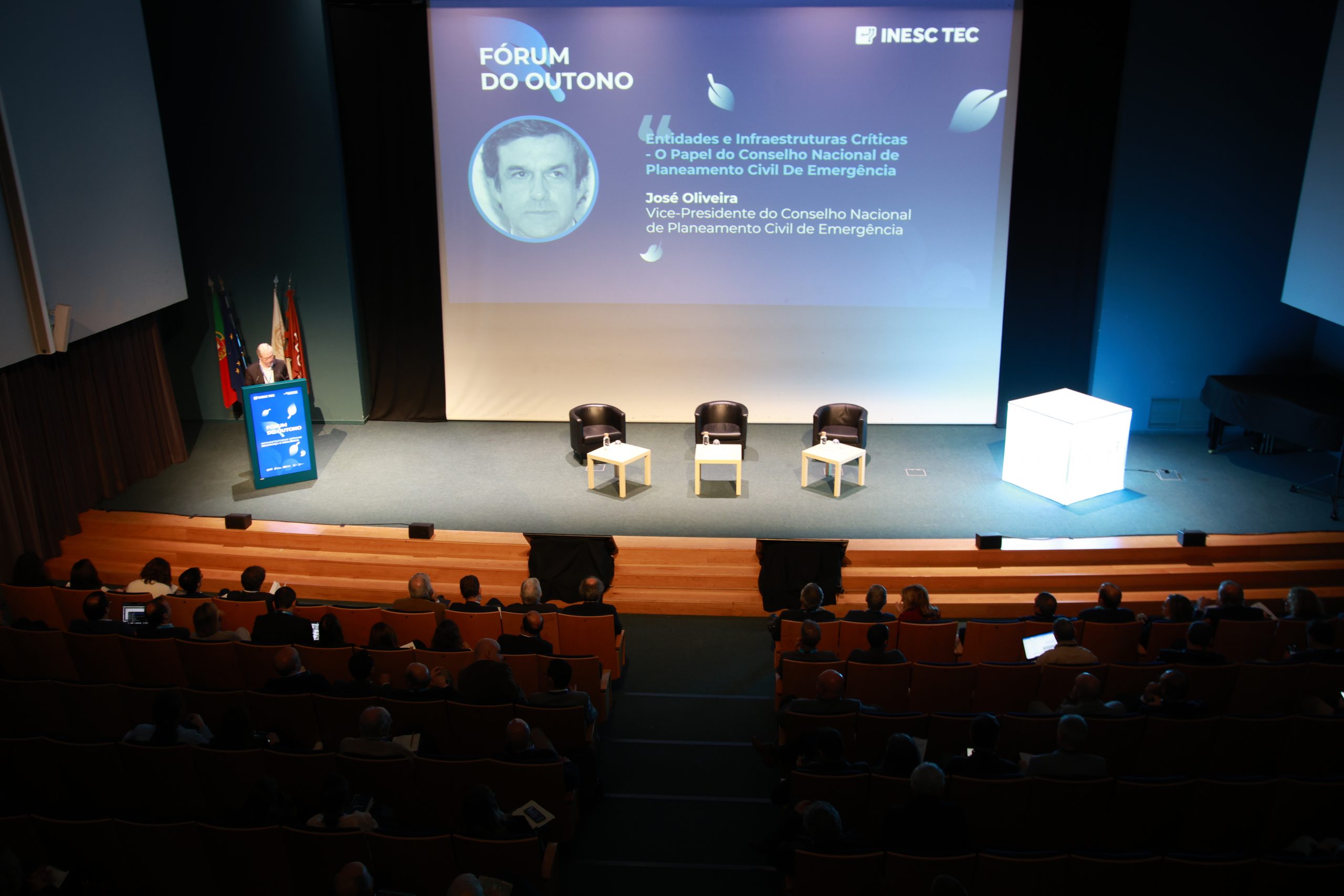 A segunda intervenção convidada do Fórum INESC TEC do Outono esteve a cargo de José Oliveira, Vice-Presidente do Conselho Nacional de Planeamento Civil de Emergência, que explicou não só que a pandemia e as guerras vieram evidenciar os efeitos em cascata da interdependência em diversos setores e as fragilidades em cadeias de abastecimento, como reconheceu que Portugal está exposto a riscos naturais, nomeadamente sismos, contando que existem, no país, 160 infraestruturas críticas.