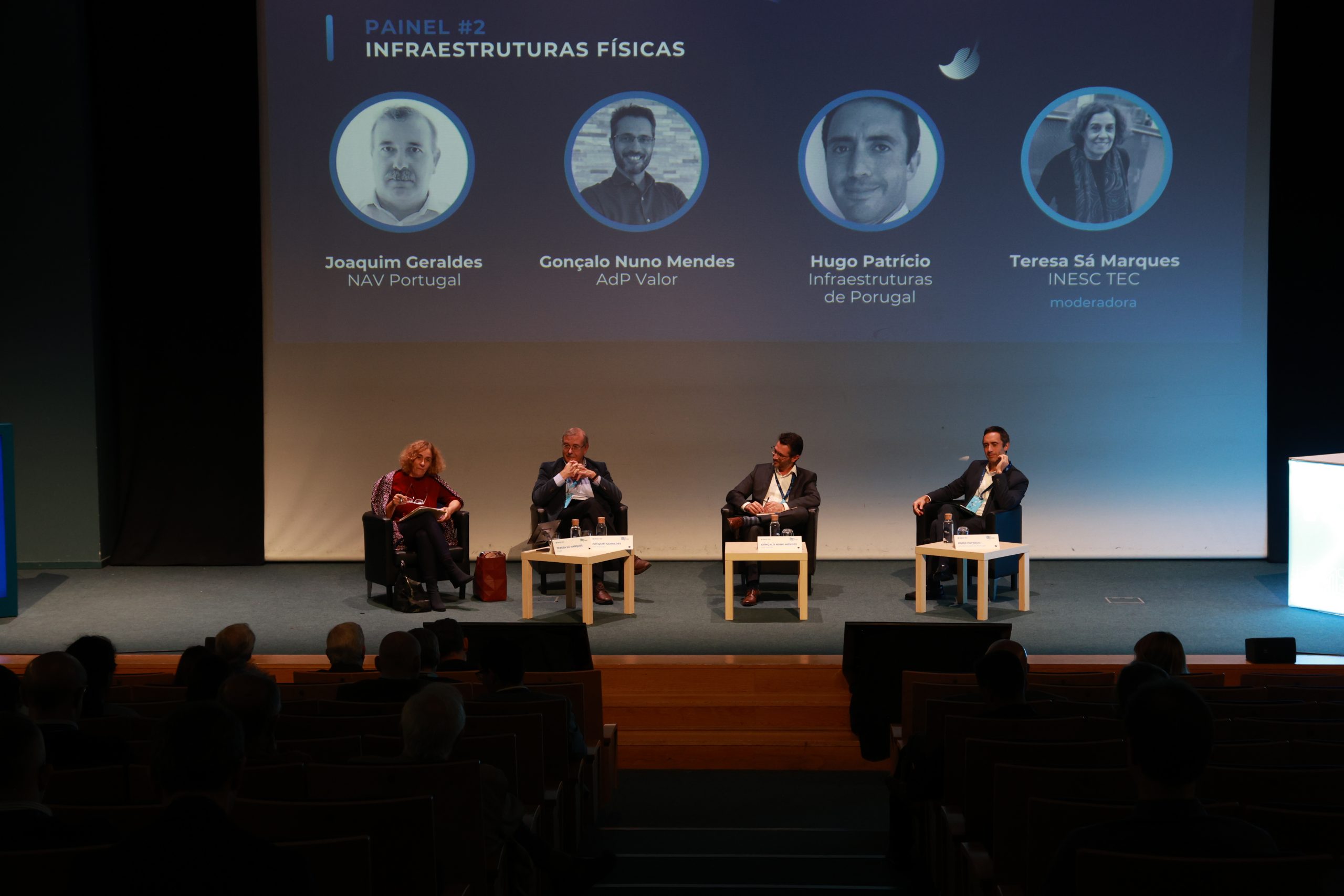 Num momento que juntou Joaquim Geraldes (NAV Portugal), Gonçalo Nuno Mendes (AdP Valor) e Hugo Patrício (Infraestruturas de Portugal) falou-se sobre as infraestruturas físicas, com destaque para a sua resiliência. Moderado por Teresa Sá Marques, docente na FLUP, o painel discutiu a forma como, apesar de em áreas diferentes e com estratégias de resiliência distintas, as empresas têm um denominador comum: o normal funcionamento do serviço, o normal funcionamento das cadeias de fornecimento e a mitigação de eventos críticos, sejam pandemias, envelhecimento das infraestruturas, terrorismo ou eventos climáticos adversos.