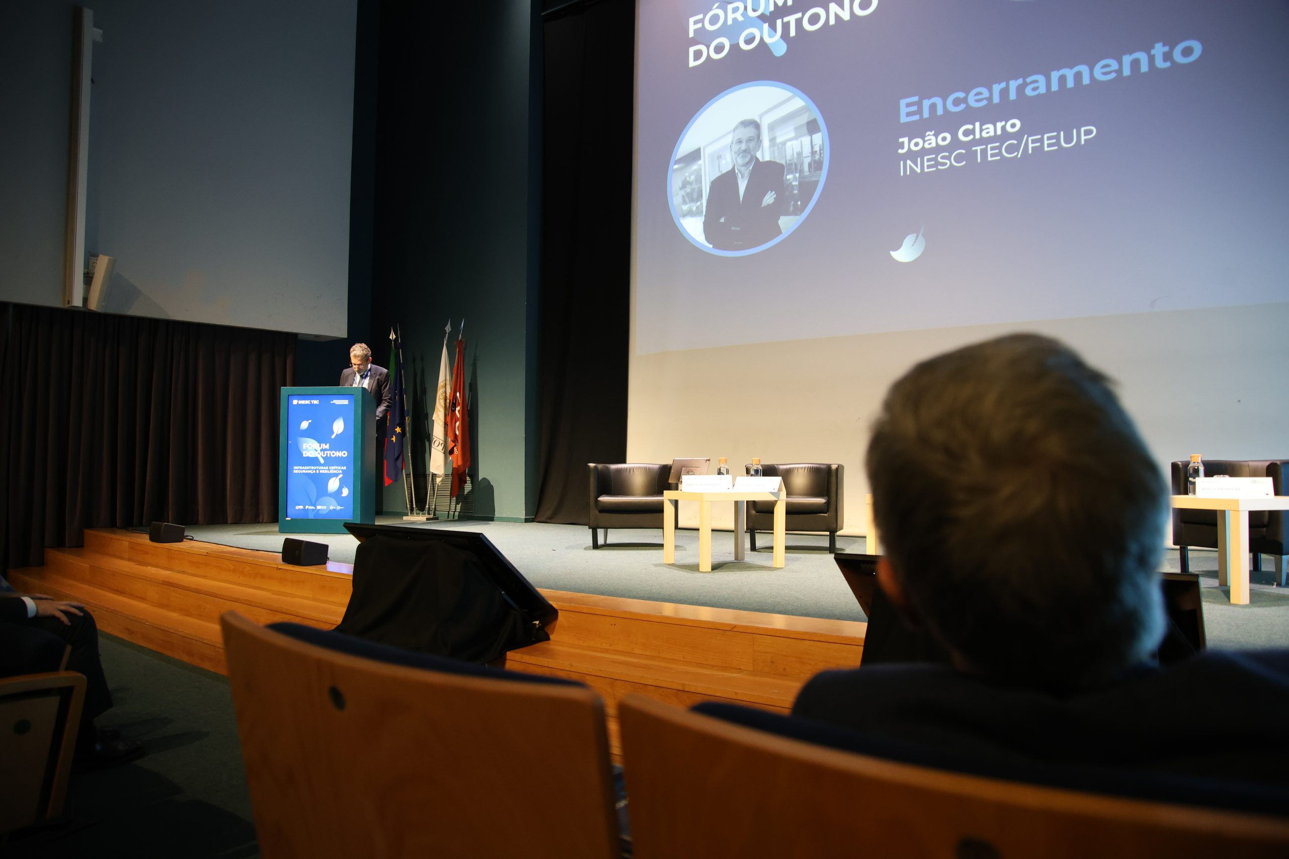 Na sessão de encerramento da nona edição do Fórum INESC TEC do Outono, João Claro reforçou a qualidade das intervenções realizadas ao longo do evento, que permitiram “entender um cenário complexo e entender quais são os principais progressos organizacionais, no domínio público e de ciência e tecnologia, que constituem as grandes oportunidades e desafios para o setor”. Segundo o Presidente do Conselho de Administração do INESC TEC, o Fórum do Outono proporcionou “um debate importante, essencial sobre a resiliência e segurança das infraestruturas críticas”, trazendo à reflexão “um tema de uma relevância e urgência bem afirmadas e crescentes, que é o tema da salvaguarda das nossas infraestruturas críticas”. Nas palavras de João Claro, trata-se não só de uma questão de segurança nacional, mas de um pilar fundamental da resiliência da economia, da saúde e bem-estar das populações e da própria estabilidade da sociedade.