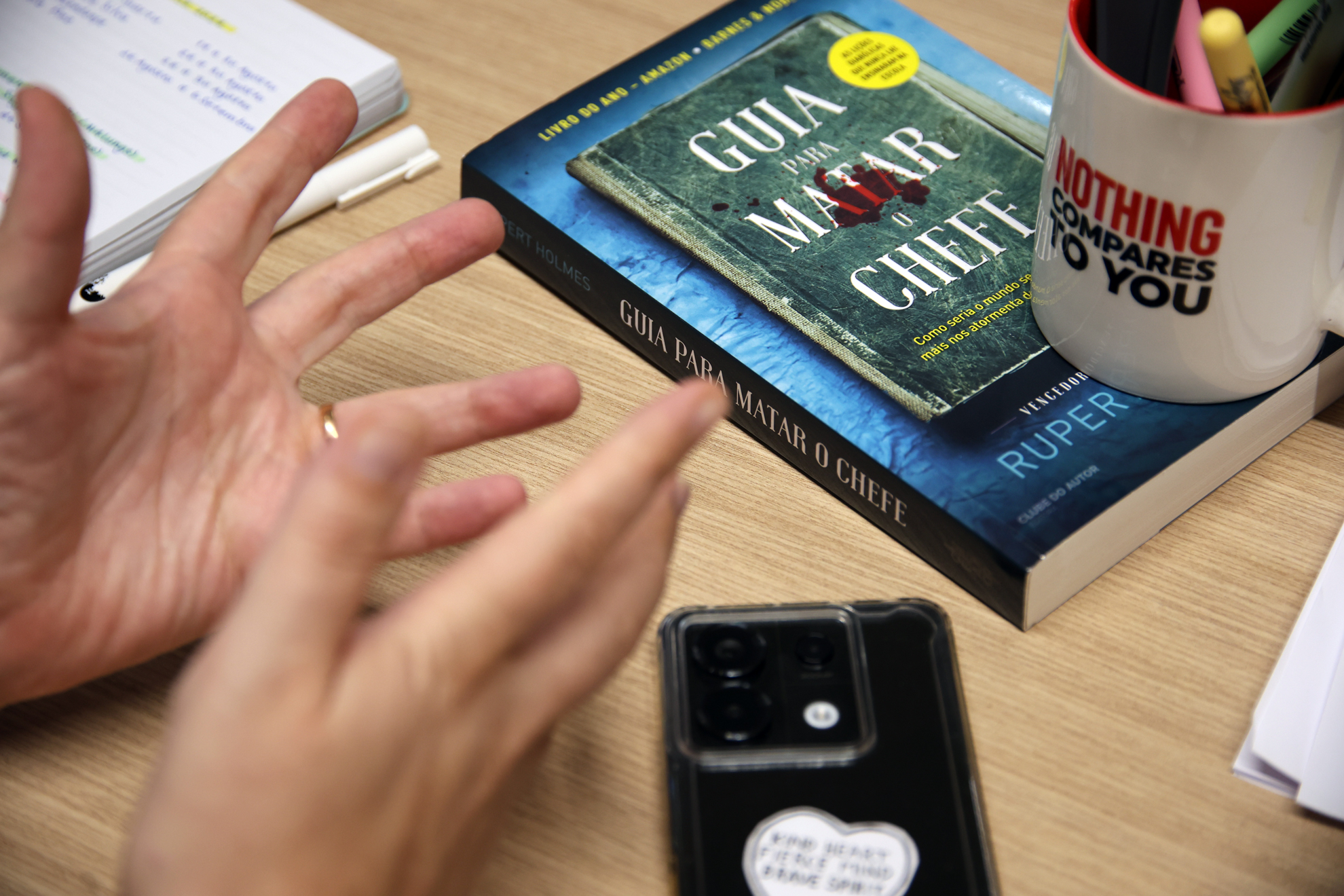 “O Professor deixou-me ser eu própria. Sempre tive aquela ideia de que, para ser secretária, tens de ser um certo tipo de pessoa, vestires-te e atuares de certa forma. Ele aproveita este meu lado mais peculiar para fazer as coisas e deixa-me ser eu mesma e fazer as coisas à minha maneira”, explica.